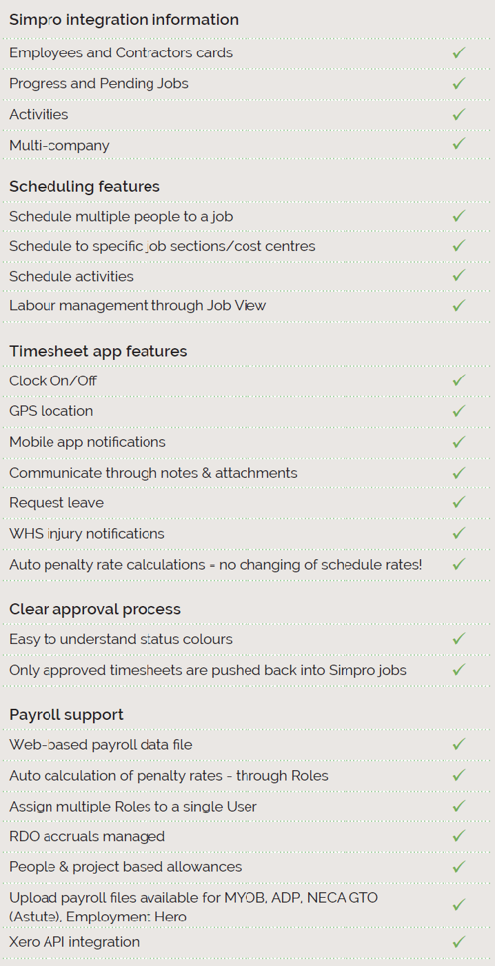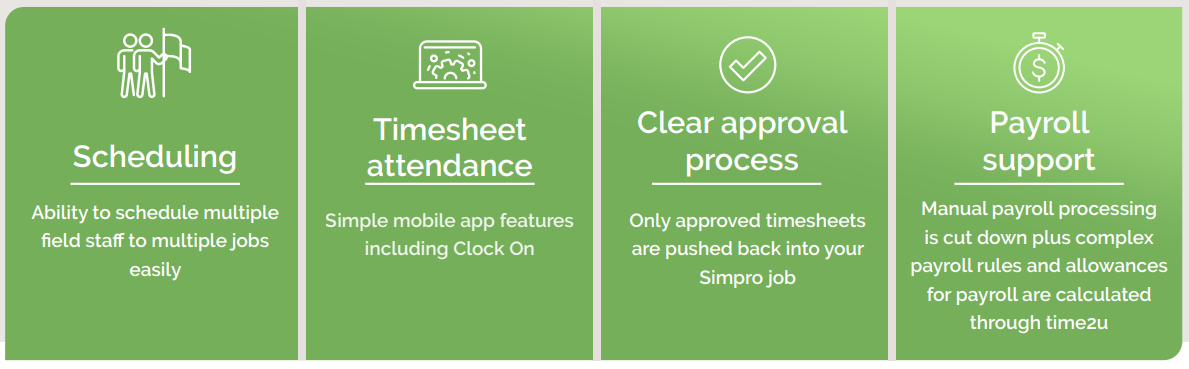 With a seamless two-way integration with Simpro, time2u